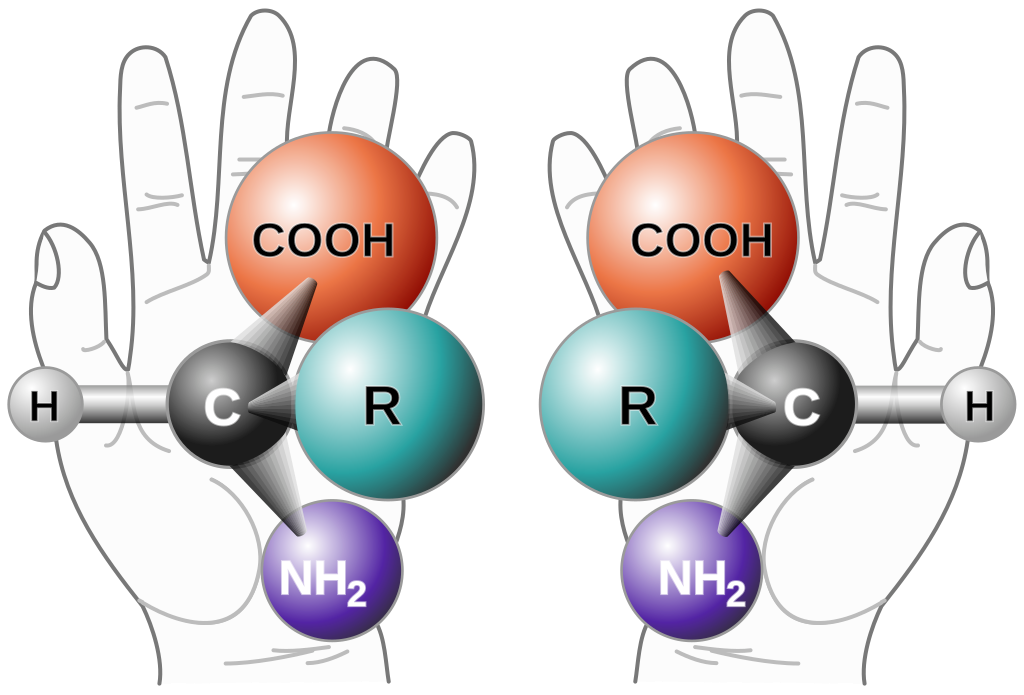 This mattered because life’s chemistry is chiral. Its building blocks come in two mirror-image forms, like left and right hands. In the laboratory, prebiotic reactions almost always make racemic mixtures – equal parts left and right. But biology chose just one hand: L-amino acids for proteins, D-sugars for nucleic acids.